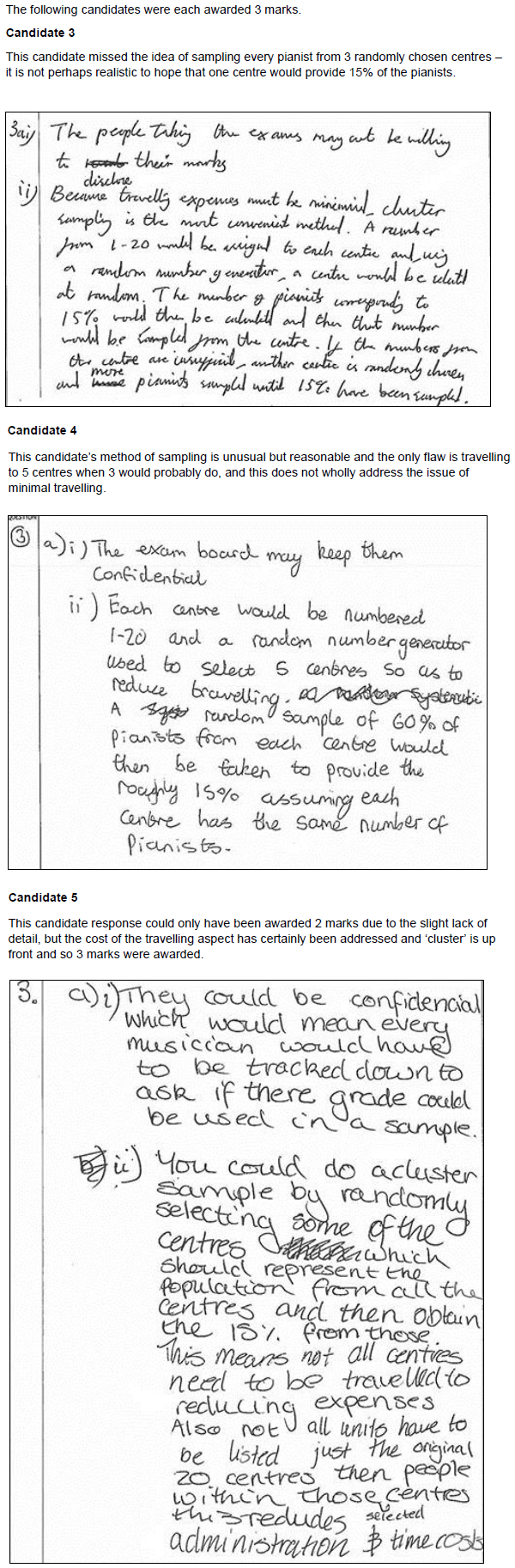 Following revision to the question papers for session 2019-20, some of the marks in these examples may be no longer in line with the revised requirements. However, they remain useful as a guide to the nature of questions and range of answers. They should be viewed in conjunction with the revised Advanced Higher Statistics Course Specification